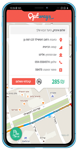 Optways שולחת באופן אוטומטי ללקוח הודעה לפתיחת לינק שבו הלקוח יכול לראות בכל רגע איפה הנהג נמצא ופרטים עליו כמו שם ומספר טלפון, ובכך יכול הלקוח להימנע משעות של המתנה לא רצויה בלי לדעת מתי יגיע המשלוח.